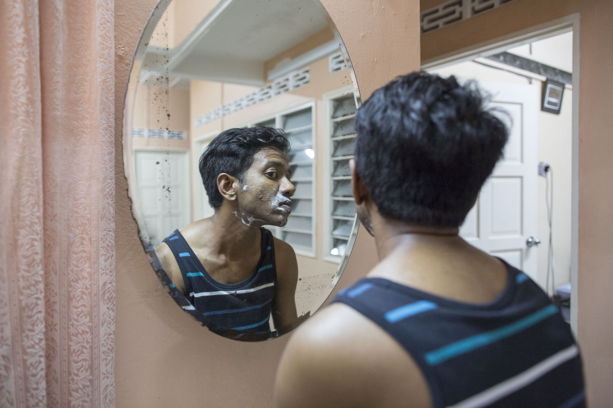 Jose and Grace first met in Malaysia at an event for trans men. Jose said: “We built a friendship for more than a year first. I was reluctant at first as the project would involve revealing quite a bit. If you’d asked me three or four years ago I wouldn’t have agreed as my dysphoria was bad.” Jose shared that notions of masculinity and femininity can be a divisive point in segments of the trans men community. He said: “Some believe it only ‘counts’ if you are taking hormones. But transitioning is not just about the physical aspects but also emotionally and mentally.” After building trust with Grace, he felt comfortable collaborating on a series of portraits showing his use of a binder.