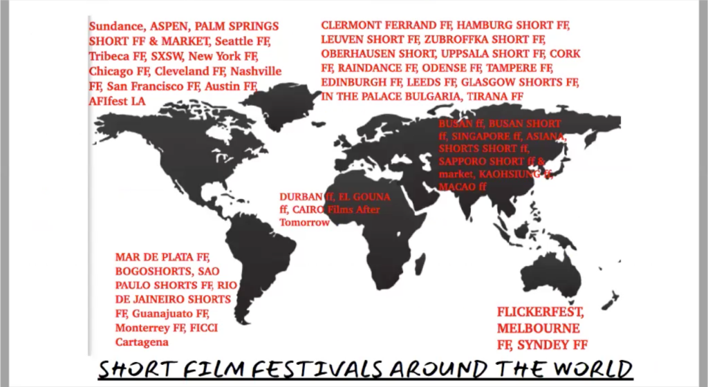 “Keep in mind you should never forget to take the map and work on each single country in each single area of the globe, to identify festivals dedicated to short film or with good short film sections. Because there are people all over the world who want to see your short films. Don’t be afraid of the fact we may have different cultures or backgrounds globally. The programmers and selection committees are often and more often interested in showing local audiences a wide as possible image of where film is going, from regions whether filmmaking is still at the beginning. And of course the short film is the future of what film is going to be.”