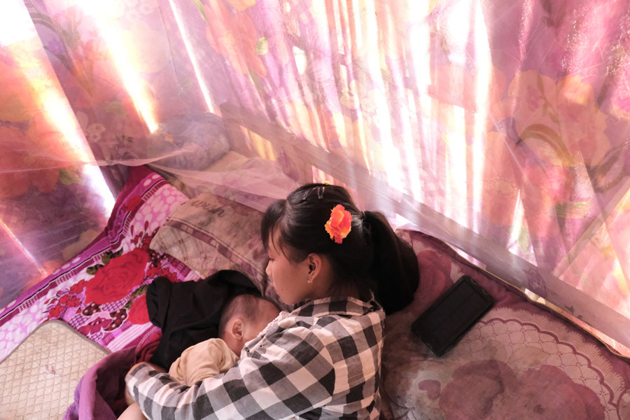 In early 2020, I photographed these young mothers for the first time when I got to know Máy via one of my friends who started a homestay business in the centre of Đồng Văn town. She was seeking short term work there before she would go off for her pregnancy. At 14, Máy illegally crossed the Chinese border and met a boy who became her husband. Now, she is a 19-year-old mother of two children.