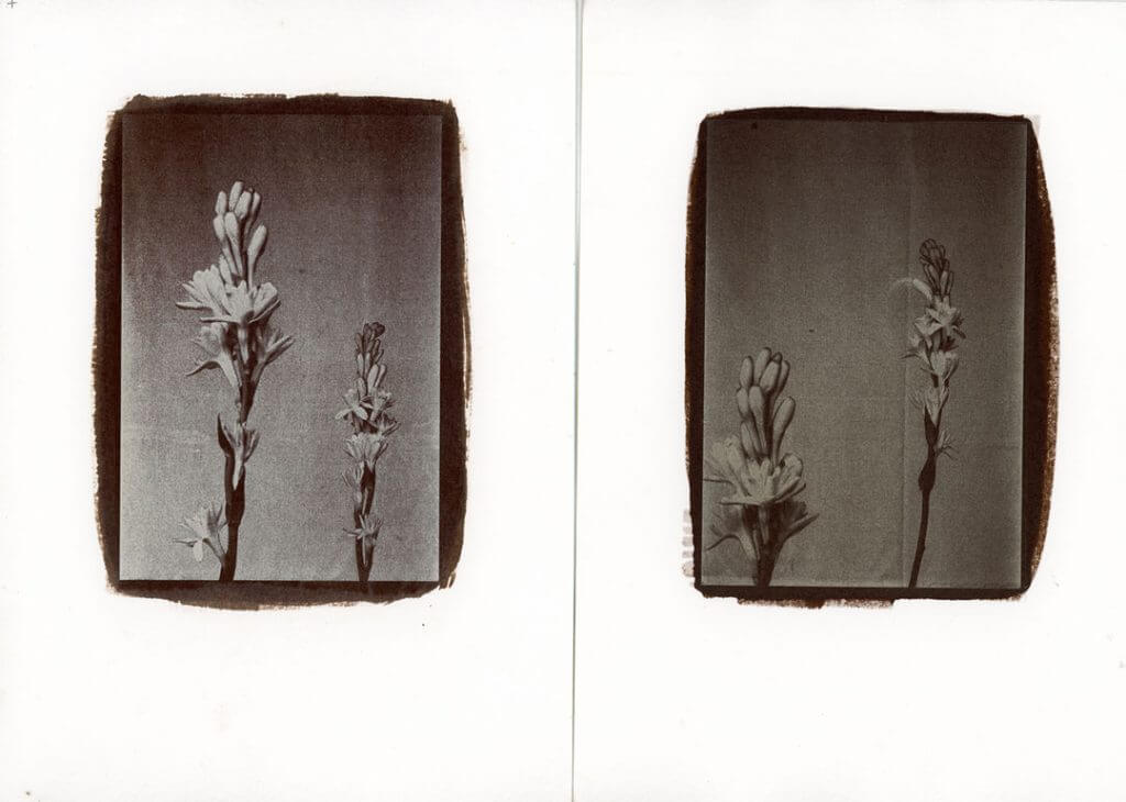 Lens based artist Aparna Nori presents two bodies of work, both created using the salted paper process. In Nalla Pilla, the mosaic of her skin and its many folds that hang heavily with the burden of years of slow trauma seem fragile and translucent, yet taut in its tenacity. If one lingers, the mosaic turns into a quiet celebration of the diversity of the tones – not just of the medium, but of her skin that held her together through those times. In the second work that shares the title of the exhibition, the prints depicting the couplet of Rajnigandha flowers, harbour in its visible brush strokes the many shades of emotions that are associated with the memories of her mother. The lines, like tree rings – a visible testimony to the passage of time.