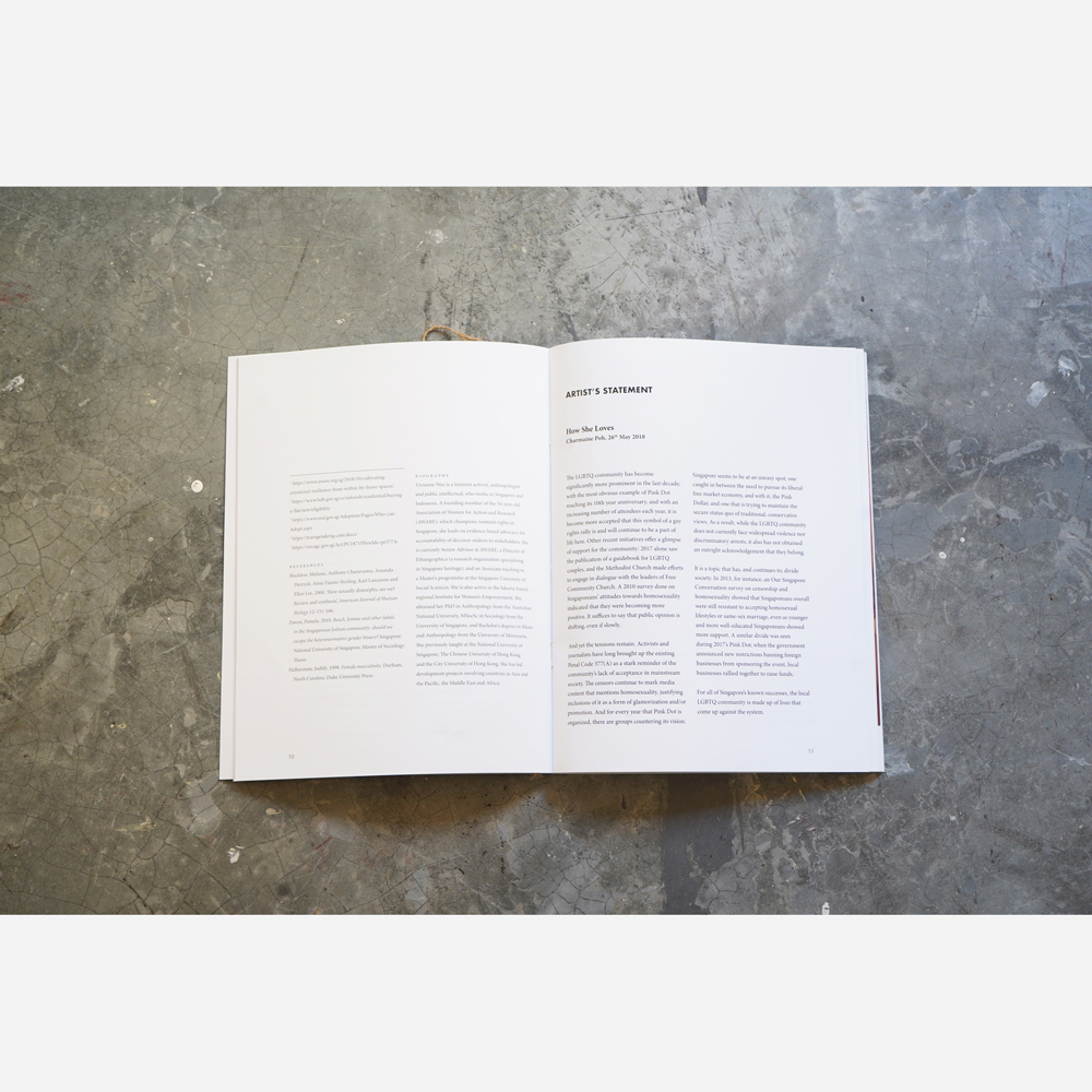 Participants are invited to a studio, where they are asked to engage with wedding backdrops, props and costumes: matrimonial tropes that have been an unmarked part of mainstream society. Projected onto the background are their parents’ wedding portraits, a pictorial representation of the heteronormative histories that have come before them, as well as the bearing of family on the manifestation of their queer lives. Drawing from ethnographic methods and theatre directing exercises, the process-driven work produces collaborative portraits that emphasise the participants’ chosen modes of self-representation. How She Loves is an attempt at uncovering the layers of the queer self, and the negotiation between reality and the imagination.