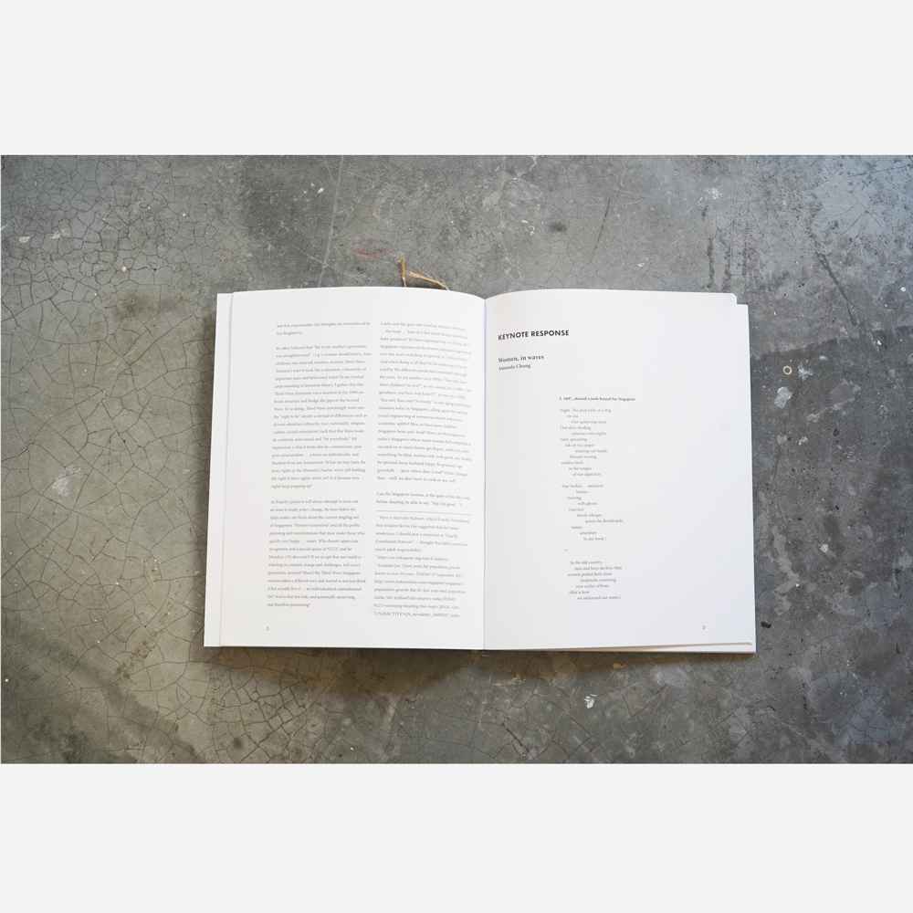 The keynote essay is a poem Women, in waves by Amanda Chong who is a lawyer trained in Cambridge and Harvard and writes poems during lunch breaks. Her first collection, Professions, was published in 2016 and shortlisted for the Singapore Literature Prize in 2018. Her poetry has been engraved on the Marina Bay Helix Bridge and included in the Cambridge International GCSE syllabus. She is interested in exploring themes of gender and power in her writing which has appeared in Monocle, the Harvard Journal of Law and Gender, The Straits Times and Quarterly Literary Review Singapore. She co-founded ReadAble, a non-profit organisation that runs literacy programmes for children and migrant women in a low income community.
