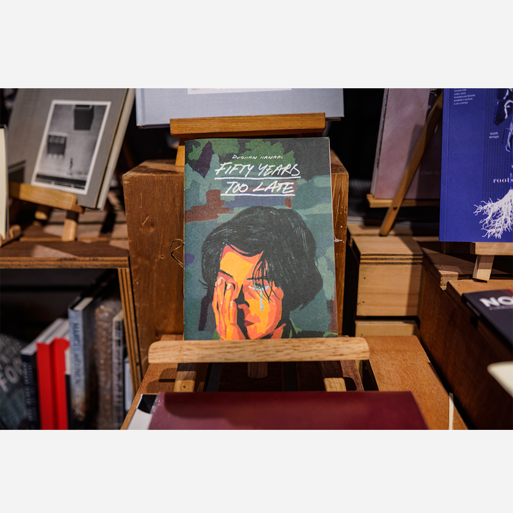 Fifty Years too Late is a collection of crayon-drawings of film-stills illustrating a series of deadpan poetic romances and heartbreaks through the unexpected playfulness of dialogue.