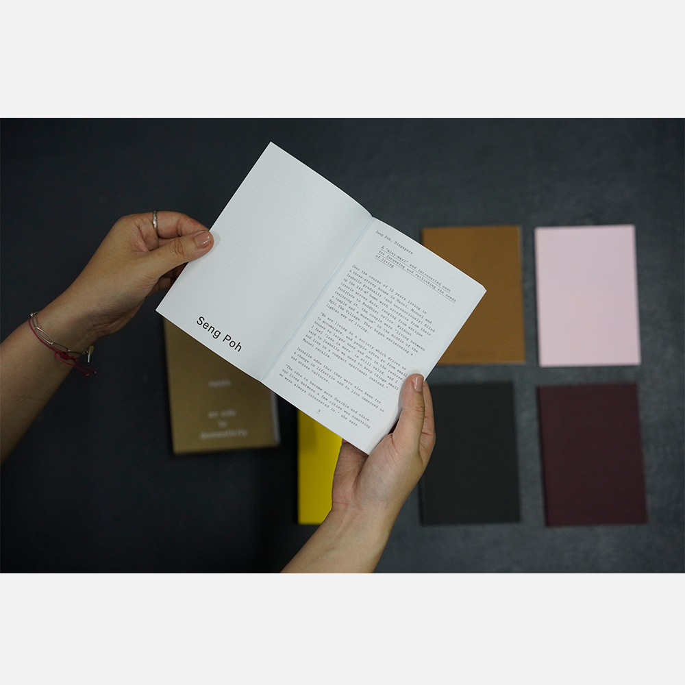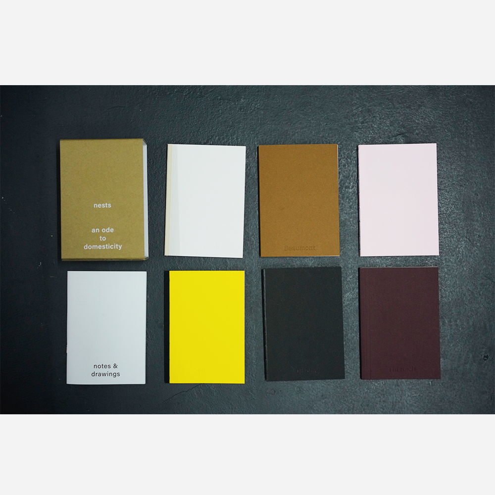 Over the last 20 years, Manuel and Isabelle Der Hagopian have built various dwellings across Singapore, Vietnam, and Switzerland to house their lives and redefine their domesticity as a fundamental need. Each ’nest’ arises from intimate conversations between them and the spaces. They depict how these spaces are not only shaped by individual tastes and interests but also through the sensibilities informed by surrounding communities and cultures, across cities. ‘Nests’ features six of these dwellings — Seng Poh, TB80, Bi Khi Ni, Thi Sach, Beaumont, and Diablay De — as seen through the lens of a frequent collaborator Khoo Guo Jie, supplemented with accompanying texts and drawings. Presented like a set of ‘material swatch’ housed in a cardboard sleeve, the design of each book features specific combinations of material, ink, binding, and construction that translates the narratives and character of each ‘nest’ in print and book form.