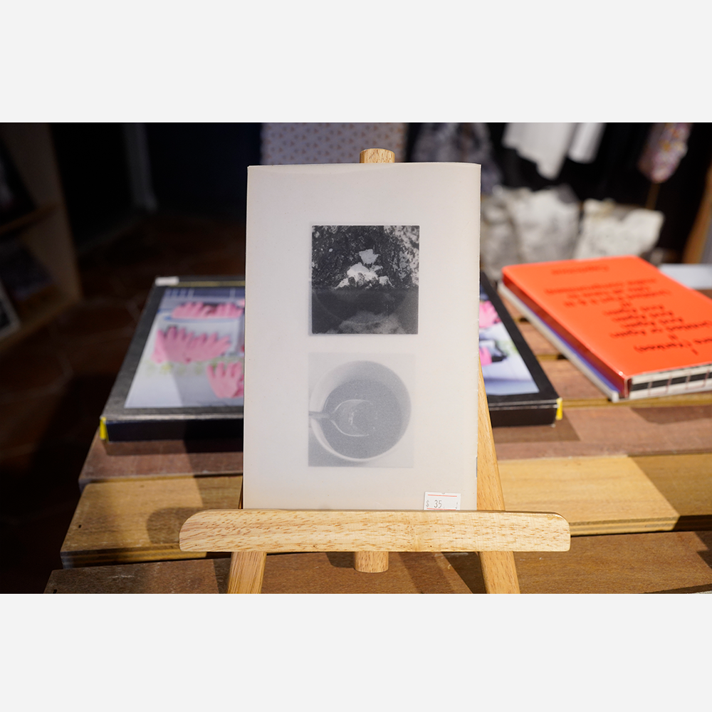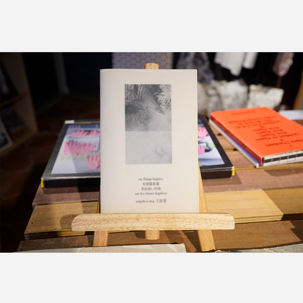 on things fugitive《如朝露暮霭》「果敢無い物事」«sur les choses fugitives is a zine/artist book consisting of laser prints on vellum and newsprint. This is Angelica’s first series of zines and every copy in this edition of 100 was bound personally by hand. The images speak to Angelica’s fascination with time and its indexes (the traces/evidence of time’s passing), such as dust, snow, ice, and smoke. Layers of dust indicate the absence of presence, piling snow marks the change of the seasons, melting ice tracks the passing of time, and burning incense (which releases smoke) measures duration. This publication captures things that evade the naked eye, that are in constant flux, that stroke the human inclination to immortalise; it is a publication on things fugitive.