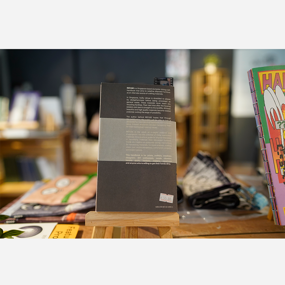 Refuse is a handbook that unveils the complex issue of furniture waste in Singapore, through thoughtful resources catered to the different needs of the dumpster diving and crafting community. Refuse aspires to be the 4th R of recycling – where the 4th R means “Refuse to buy, to throw and to do nothing”.