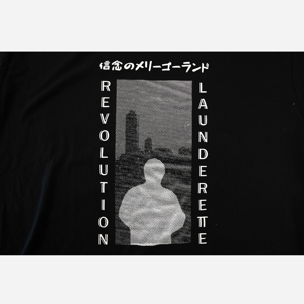 Cotton tees featuring a silkscreen print from the independent feature film, Revolution Launderette 『信念のメリーゴーランド』, by Singaporean filmmaking duo Mark Chua and Lam Li Shuen. The self-financed gonzo film was shot in Japan over two years and is an official selection of the 30th Singapore International Film Festival 2019. Proceeds from each tee will go to supporting the production costs of the film.
