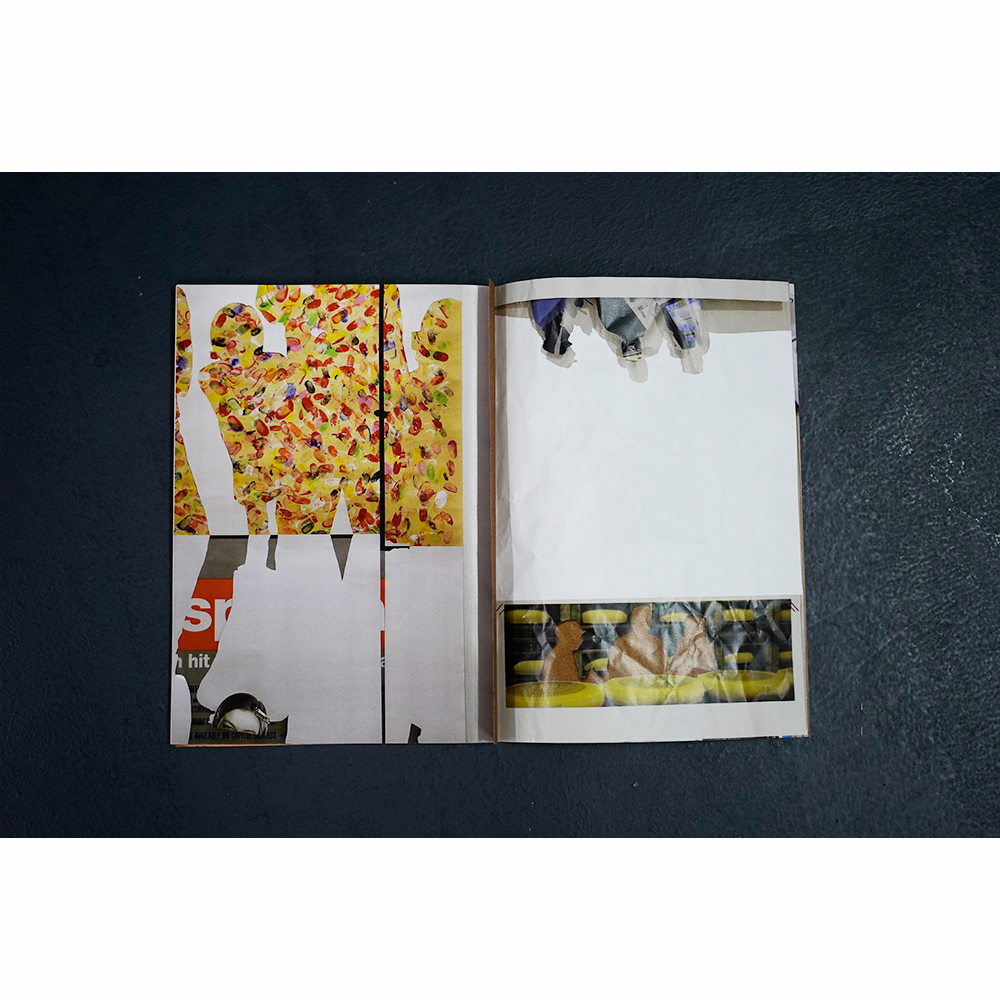 Each book has a slightly different finish – sandpaper clipped into the book, deliberately wrinkled, coffee stained, scribbled, glued and torn, and so on.