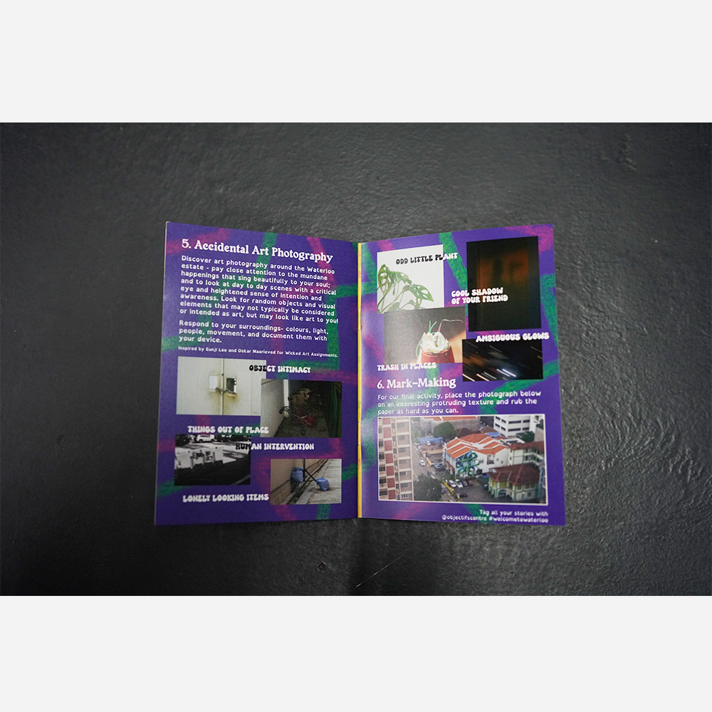 Welcome to Waterloo is an interactive zine filled with photo-taking activities to be carried out on the premises of Waterloo. The zine acts as a little guidebook to taking pictures around the Waterloo estate- promoting conscious and intentional photo-taking and experimental ways of seeing habits when it comes to taking photographs with our mobile devices. The contents of the zine are suitable for audiences aged 12 and above.