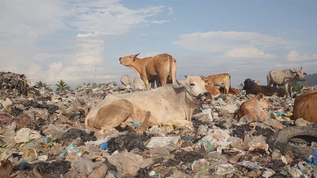 Every morning hundreds of cows are herded to a landfill site. They make it their home; they eat, nap, play, and mate here while having to keep themselves safe from the excavators and bulldozers that plow around the site. If not careful, a cow might lose its life here, killed by the heavy machines or trapped under tons of trash. Despite all the risks, this practice has been around for many years as their owners save the trouble of looking for pasture and instead rely on human food waste to feed them. While some cows are lucky enough to have a barn to return to in the afternoon, some have to spend the night here because the owner lives far away from the site. Regardless, all these rubbish-eating cows will share the same destiny under the butcher’s knife.